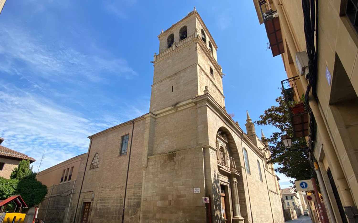 Constituye una de las cuatro iglesias del Casco Antiguo de Logroño, localizada entre las calles Ruavieja y Mayor. Reedificada, ampliada y reconstruida en multitud de ocasiones, su elemento más conocido se denomina “la aguja”, esta se describe como una torre de planta octogonal cuyo nombre proviene de los propios logroñeses. Este elemento distintivo es uno de los muchos signos representativos del Logroño medieval. La iglesia y su claustro han sufrido numerosos incidentes a lo largo de su historia, siendo este último rehabilitado recientemente y abierto al público, albergando hoy en día numerosas exposiciones.